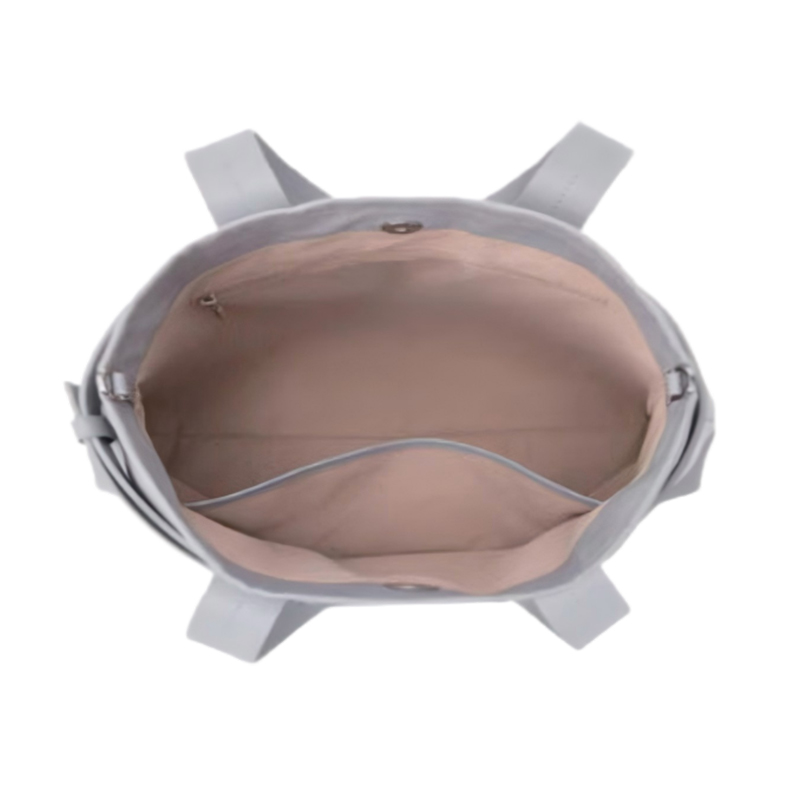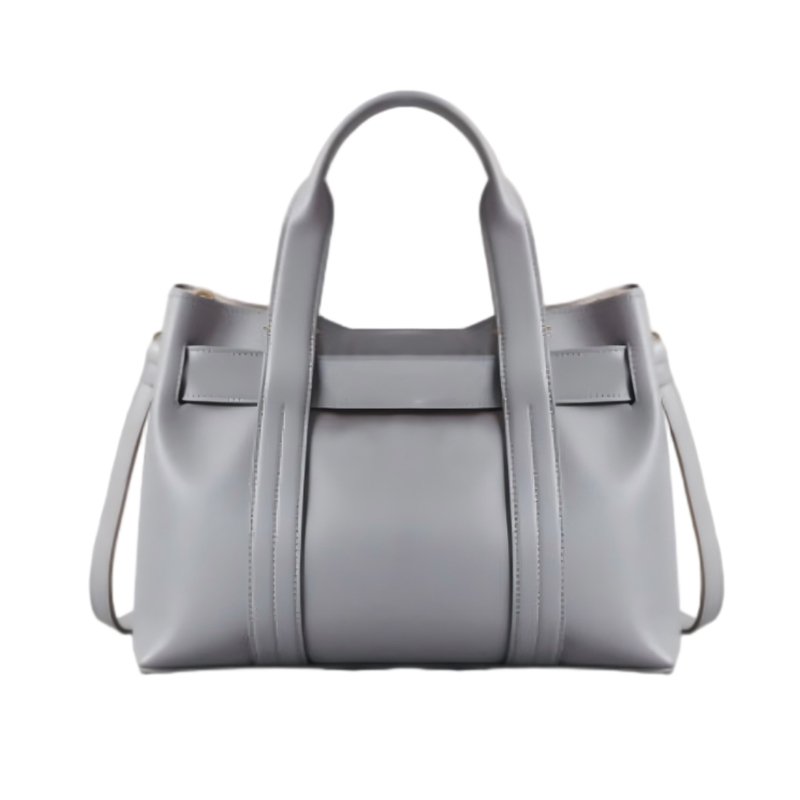 This elegantly designed gray leather tote bag is a refined take on the classic tote. With a slightly lower height, it offers a more delicate and sophisticated appearance while still providing ample space for your essentials. A perfect balance of luxury and practicality, this handbag is ideal for any occasion.