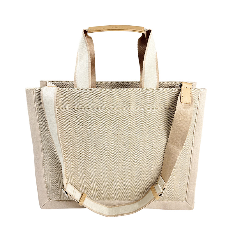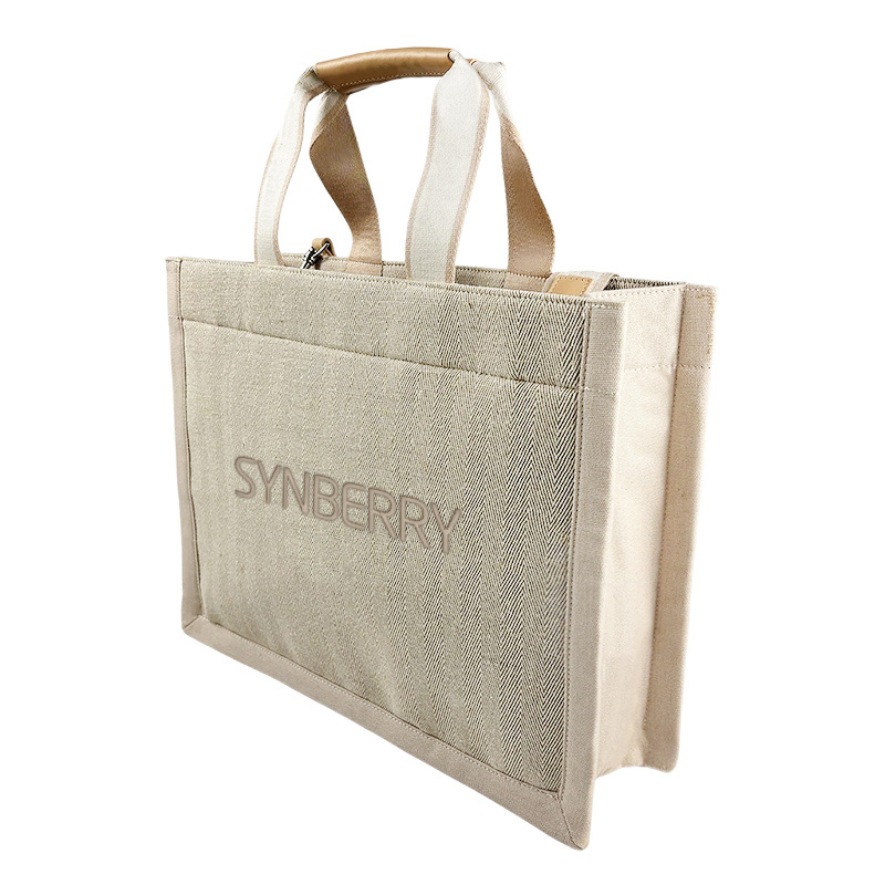 Confeccionada em linho natural com padrão espinha de peixe, esta bolsa tote SY-WB251031 apresenta um elegante logotipo bordado na parte frontal, ferragens metálicas resistentes e uma alça de ombro ajustável, enriquecendo ainda mais a categoria de bolsas de ombro casuais e bolsas tiracolo femininas, oferecendo uma opção ecologicamente consciente para o mercado e os consumidores. Ela combina perfeitamente com diversas ocasiões, seja para um passeio durante o dia, para ir ao escritório ou para uma reunião.