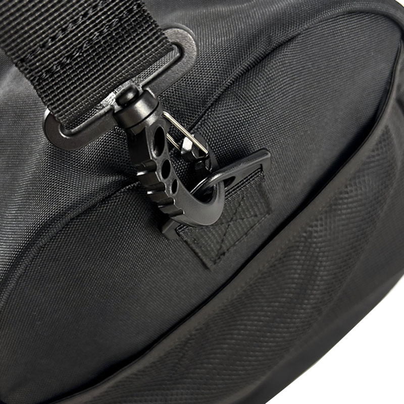 A base da bolsa é reforçada com uma placa de policarbonato de 3 mm para excelente suporte e manutenção do formato, mesmo quando totalmente cheia. A alça de ombro alargada em poliéster é macia e resistente, tendo sido testada com mais de 400 ciclos de carga de 7 kg para garantir conforto. A alça de mão é revestida em EVA, oferecendo uma pegada confortável para carregar a bolsa manualmente. Os zíperes duplos SBS proporcionam um funcionamento suave e as fivelas de plástico preto de alta qualidade garantem durabilidade.