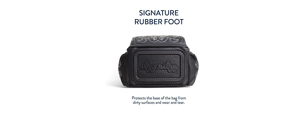 Recurso adicional 1A base de borracha com design trançado proporciona ampla estabilidade, permitindo que a mochila fique em pé e evitando que a parte inferior da bolsa fique suja.