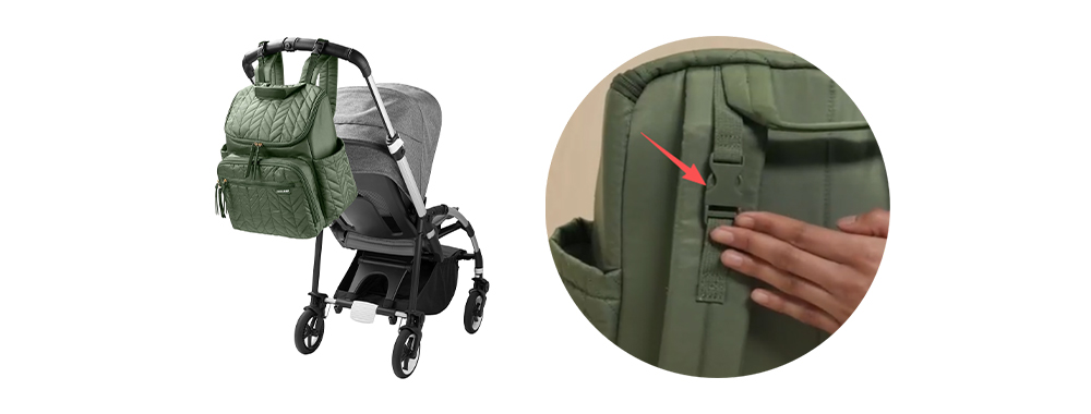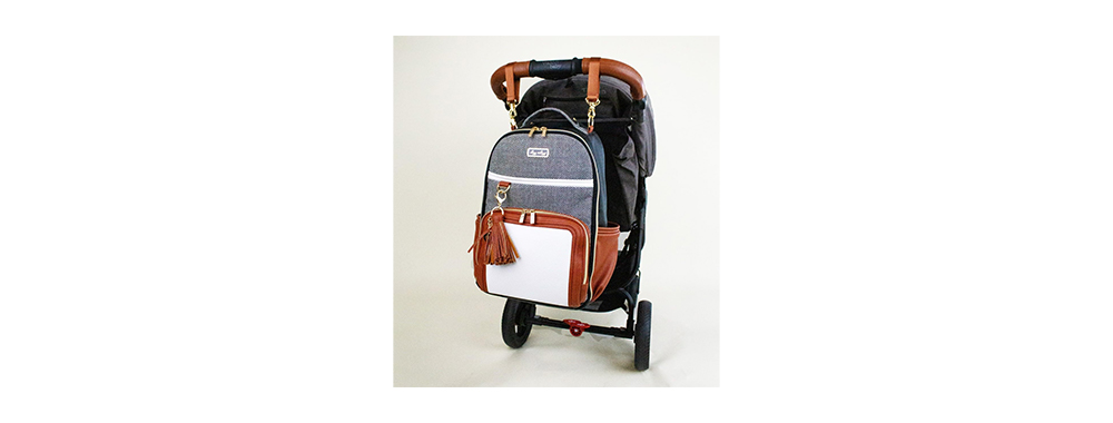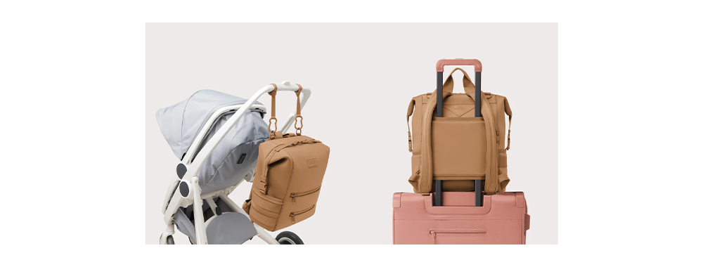 Recurso adicional 1: Cada mochila para fraldas Dagne Dover Indi vem com uma alça para carrinho de bebê.