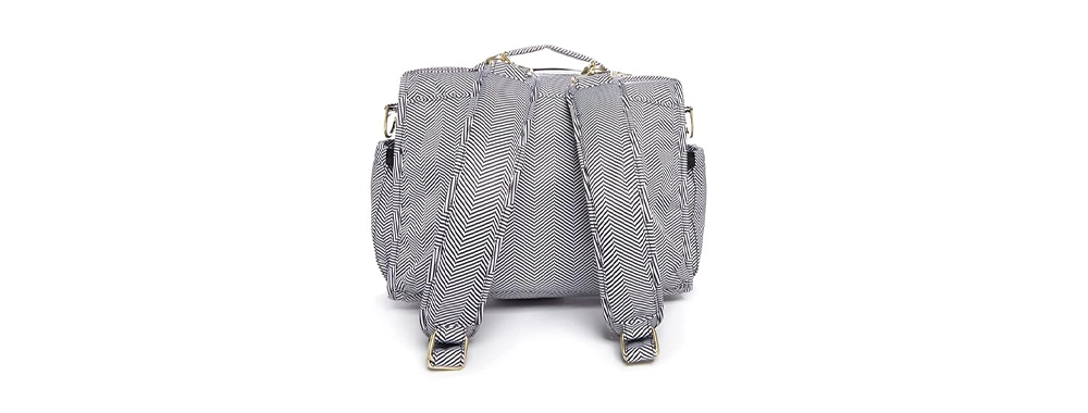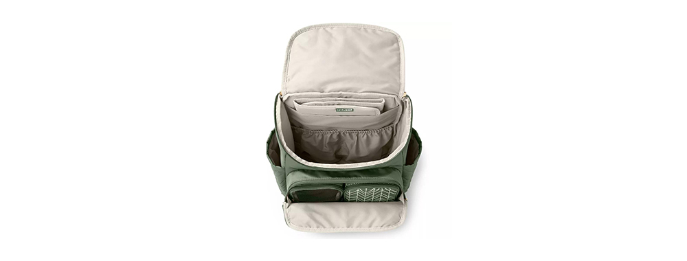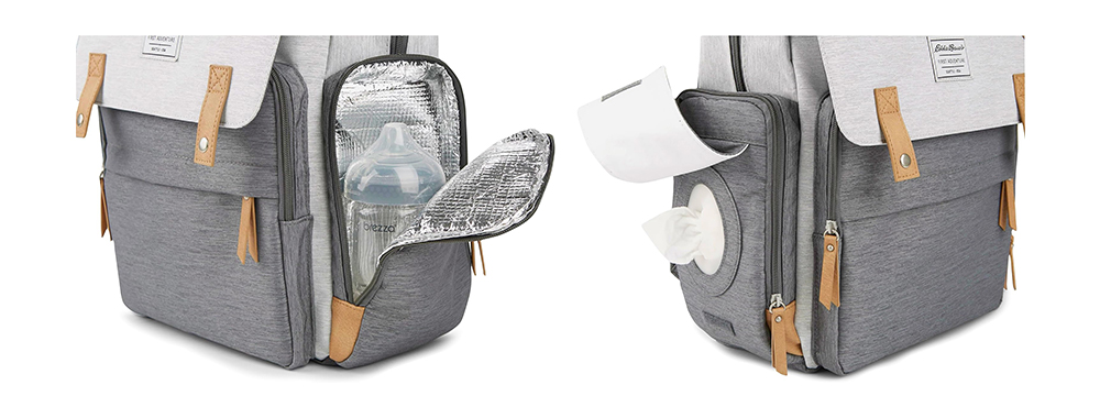 Organização e capacidade interna: O design interno é relativamente tradicional e básico. Geralmente inclui alguns compartimentos principais, bolsos laterais, um bolso térmico para mamadeira e um trocador removível. O número de divisórias e o design funcional (como bolsas impermeáveis específicas e bolsos altamente segmentados) não são tão ricos e detalhados quanto os encontrados em marcas profissionais como Itzy Ritzy, JuJuBe ou Skip Hop.